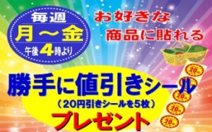 2025年12月2日(火)より毎週平日夕方4時「勝手に値引きシール」復活!!New!!