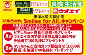 マルちゃん Smiles for All. 商品券2,000円分が抽選で100名様にプレゼント!!New!!