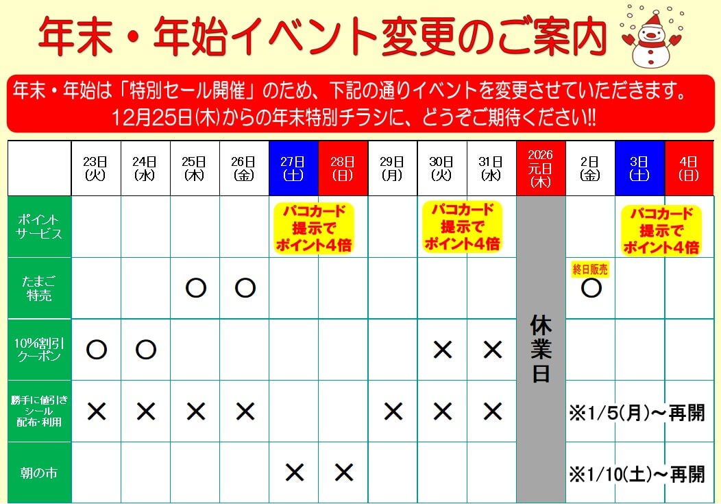 年末・年始は「特別セール開催」のため、各店の営業時間およびイベント内容を変更させて頂きまます。