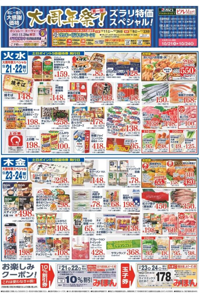 - ピアレマート直江津店、ピアレマート新井店では日頃の感謝の気持ちを込めての2店合同の大周年祭開催しています!!