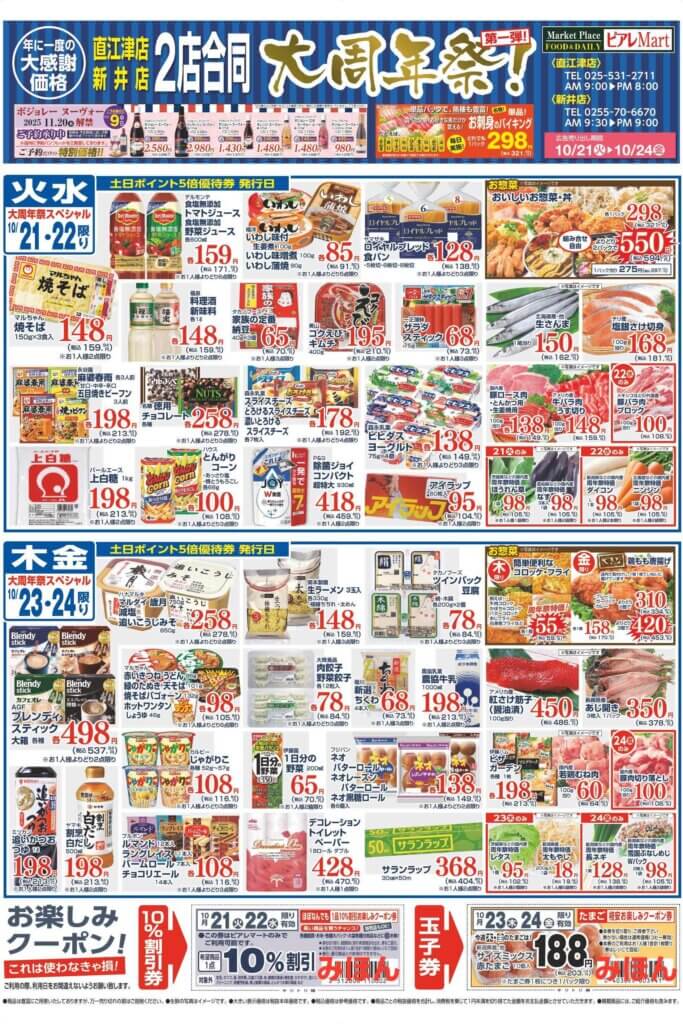 - ピアレマート直江津店、ピアレマート新井店では日頃の感謝の気持ちを込めての2店合同の大周年祭開催しています!!