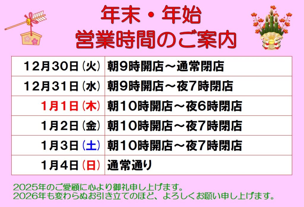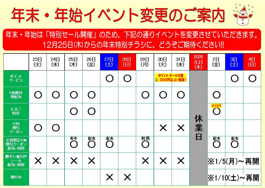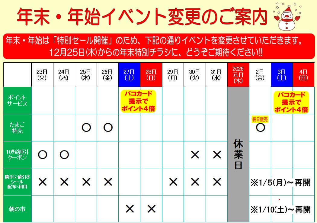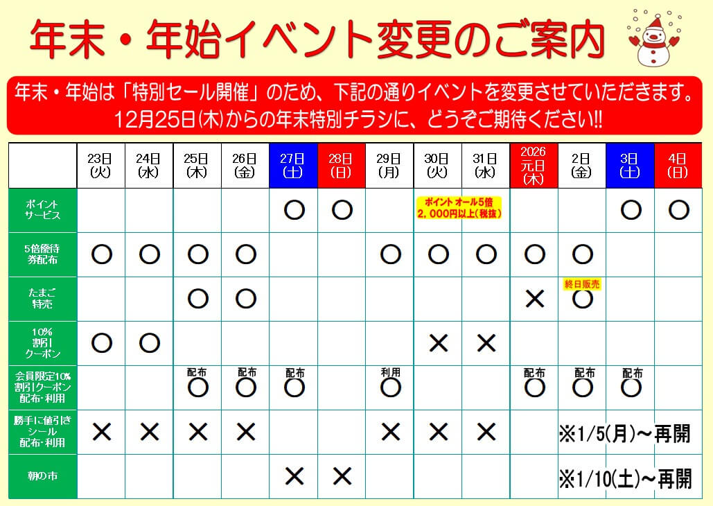 年末・年始は「特別セール開催」のため、各店の営業時間およびイベント内容を変更させて頂きまます。