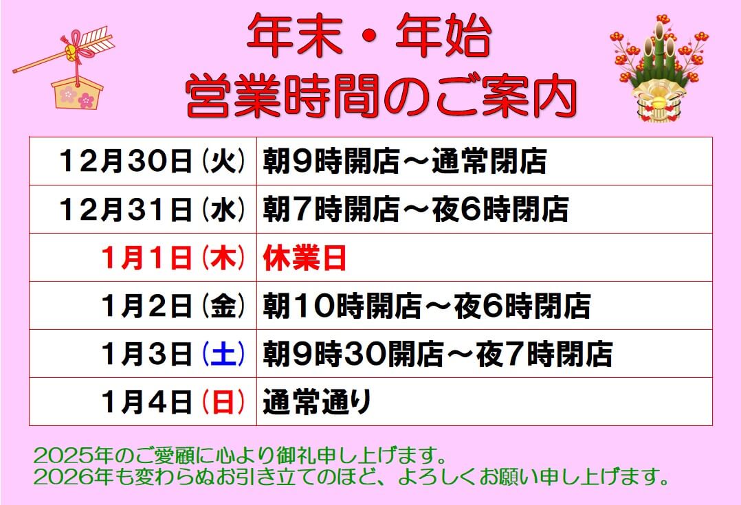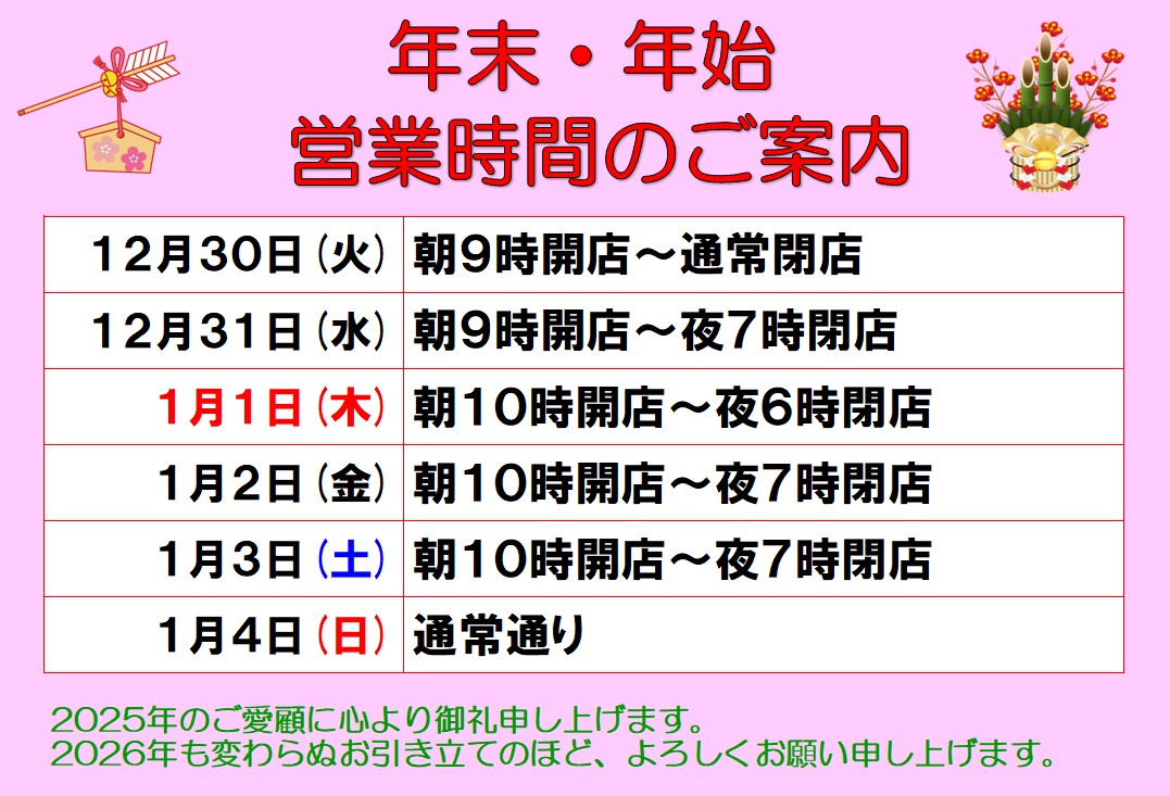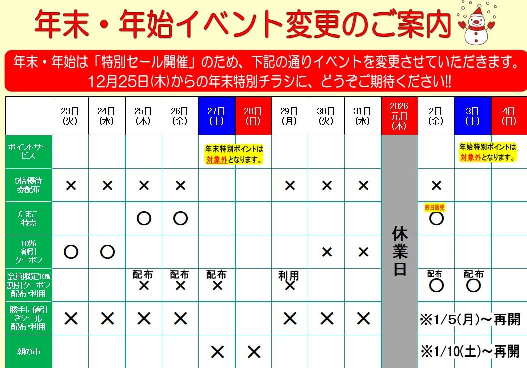 年末・年始は「特別セール開催」のため、各店の営業時間およびイベント内容を変更させて頂きまます。